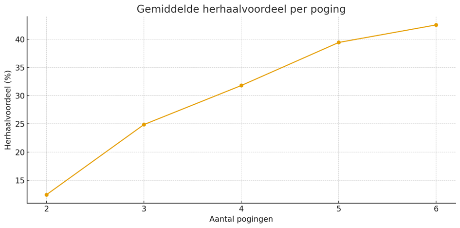 Om puzzelsessies eerlijk met elkaar te kunnen vergelijken, corrigeren we vervolgens iedere poging met de bijbehorende herhaalfactor: